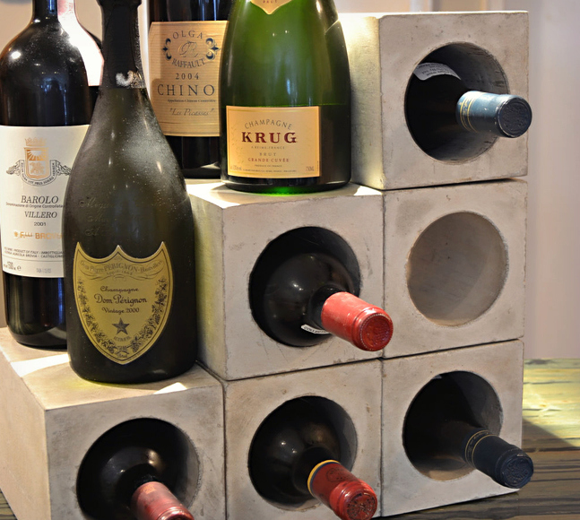 Next up is an Etsy shop out of Hipster Mecca Williamsburg, Brooklyn: Concrete Wine Bunkers by Decor Atelier. Using reclaimed materials, Decor Atelier makes a lot of awesome home furnishings, but nothing is as cool as his concrete wine bunkers. According to his page, “This concrete block fits most 750 Ml wine bottles measuring 5″w x 5″h x 9″d.” Each block costs about $25 so build up your storage as you build your collection. You can buy the concrete wine bunkers here.