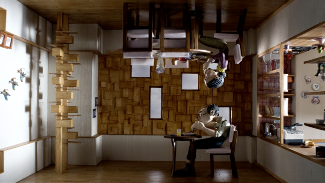 Anyway, today’s short film is Oscar Nominated Animated Short “Head Over Heels” directed by Timothy Reckart. “Head Over Heels” is about a husband and wife who have grown apart over the years. He lives on the floor, she lives on the ceiling, and their marriage hangs in the balance.