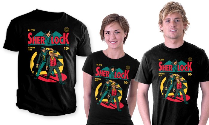 For today only, tee-shirt website Tee Fury has a pretty awesome design for the Sherlock lovers out there. “Sherlock Comic” is designed by tee-shirt artist “Harebrained” who has a spectacular collection of geeky and inspired tees out there. Anyway, check out the teeshirt here for a limited time for as with all Tee Fury shirts, it will be a new design tomorrow.