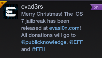 In a surprise tweet this morning team evad3rs announced an untethered jailbreak for all apple devices, including the iPhone 5s and iPad mini, running stock iOS7 and above.
