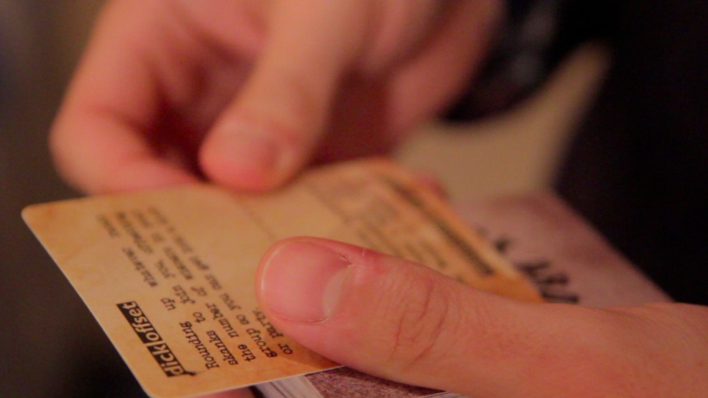 I mention the beer thing because the conceit of the game, think Balderdash with Urban Dictionary, is one of those easy “Why didn’t I think of that” ideas that can only come to fruition when downing several pints. The back and forth of ‘You should do it man…‘ ‘Oh I don’t know…’ ‘No dude, you should totally like… (burp in mouth) make some cards up and like totally do it‘. (I am not saying this is how the scenario actually played out, but basically every great drunk idea follows a similar pattern). And so, after many pints, Lesinski put the game up for funding from the net and the world of gaming is better for it.