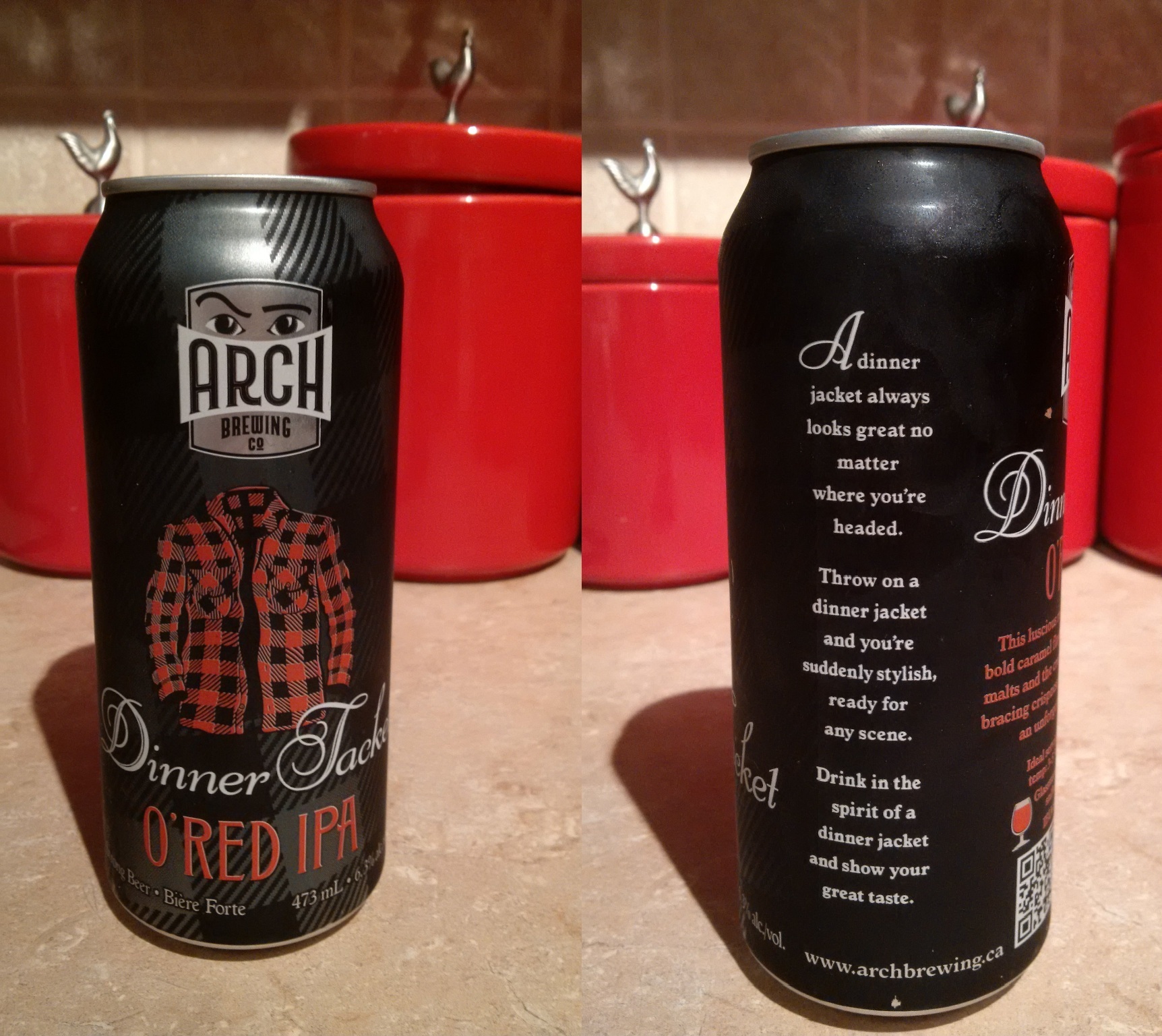This is how it usually begins.  Well actually it begins with an invitation asking me to attend some social event that I probably don’t want to go to in the first place.  But once I’ve accepted that it can’t be that bad (but probably will be); I am confronted by a riddle.  Dress code: Business casual.  What the hell does business casual mean?  As far as I can tell business casual is some type of secret man-challenge to dress well, but not too well; and avoid the unenviable position of being the most overdressed or too casual.  “Is my uncle coming?” is usually the first question I ask.  You see if the man who showed up to a family reunion in cut-off jeans and a too-tight certified breast inspector t-shirt is coming, I can be fairly confident I won’t be the most casual.  Overdressed, on the other hand, is a little harder to assess but I may have finally found my answer in Arch Brewing Company’s Dinner Jacket O’Red IPA.